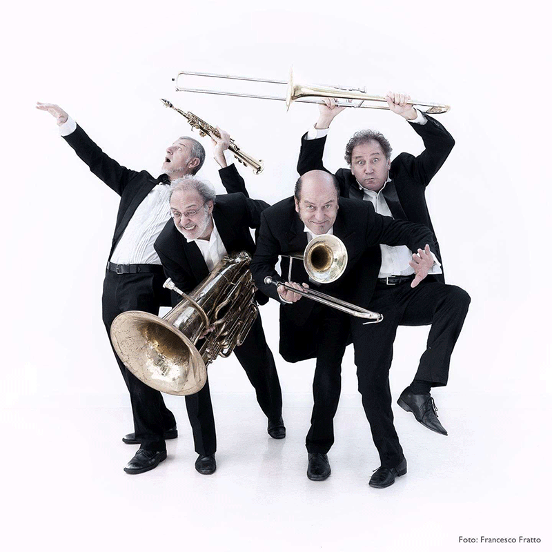 Nasce nel 1980 a Vercelli. È considerata la massima espressione in Italia della comicità nel teatro musicale. Nei primi anni di attività, la Banda si dedica prevalentemente a spettacoli di strada. L’originalità della proposta che fonde musica, teatro e comicità riscuote un immediato successo. Il dispendio di energie, il ritmo vorticoso e le continue sorprese diventano la cifra stilistica del gruppo, la musica l’asse portante e, al tempo stesso, collante drammaturgico. Musica di tutti i generi (classica, rock, folk, jazz) miscelata con ironia e una buona dose di dissacrazione. Musica come suggestione: sonora e di immagine. Musica come divertimento: nell’eseguirla e nell’ascoltarla. Dalla strada al teatro, il passo non è breve, ma articolato. Eppure negli ultimi decenni il quartetto ha costruito il proprio successo e la propria inimitabile identità proprio sul palcoscenico, senza peraltro negarsi la possibilità di frequentare anche il mezzo radiofonico e televisivo e di realizzare colonne sonore per il teatro e per il cinema, tra cui “Anche libero va bene” di Kim Rossi Stuart; “Ospiti” (premio Agis Siae al Festival del Cinema di Venezia), “L’imbalsamatore” (premio Flaiano) e “Primo amore” di Matteo Garrone (premi Orso d’argento al Festival di Berlino, David di Donatello, Pegaso d’oro, premio Flaiano e molti altri); “Qualunquemente” con Antonio Albanese. Presentato lo scorso 6 luglio in anteprima al Festival teatrale di Borgio Verezzi (Savona), “Banda 4.0” è lo spettacolo creato per celebrare i quarant’anni di attività artistica.