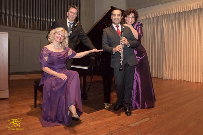 Con la cantante Daniela Stigliano c’è un trio strumentale composto da Giuseppe Lo Preiato (oboe), Raffaele Bertolini (clarinetto) e Laura Beltrametti (pianoforte), componenti di questa formazione che con la musica attraversa i secoli e i generi. L’Harmony Ensemble canta e suona l’Opera, dal genio di Salisburgo, per l’appunto, ai grandi del melodramma italiano Bellini e Puccini, con le famose “Casta Diva” da «Norma» e “Quando m’ en vo” da «Bohéme». Ma si toccano anche altri universi sonori, in maniera molto trasversale, con “Night and Day” di Cole Porter e “Think of me” dal musical «Il fantasma dell’Opera» di Andrew Lloyd Webber. E non mancano un’incursione nella musica per film di Ennio Morricone, con “Gabriel’s oboe”, tema portante della colonna sonora del film «Mission», e un’altra nella grande tradizione napoletana con “I’ te vurria vasà” di Eduardo Di Capua, l’autore di “‘O sole mio”.
