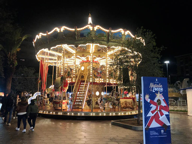 Proseguono il mercatino Che tipico Natale in piazza Sant’Oronzo, la fiera di Santa Lucia ai Teatini, il mercatino dei doni in Piazza Mazzini, dove è allestita anche la giostra meravigliosa, il presepe artistico in Piazza Duomo, le visite guidate alle Mura Urbiche e al Parco archeologico di Rudiae.