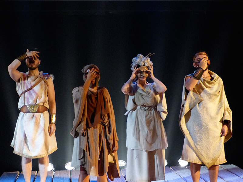 Il cast di interpreti de «Le tragicomiche» è composto da quattro «fliaci», come si chiamavano gli attori delle farse rappresentate nelle colonie greche, vale a dire lo stesso Savino Maria Italiano, Lidia Ferrari, Giuseppe Marzio e Abril Milagros Gauna, protagonisti sulle scene di Michelangelo Campanale (autore, inoltre, del disegno luci) di uno spettacolo che racconta le tragedie di eroi e Dei dell’antichità ricorrendo all’uso delle maschere, realizzate da Roberta Bianchini (i costumi sono di Lisa Serio).