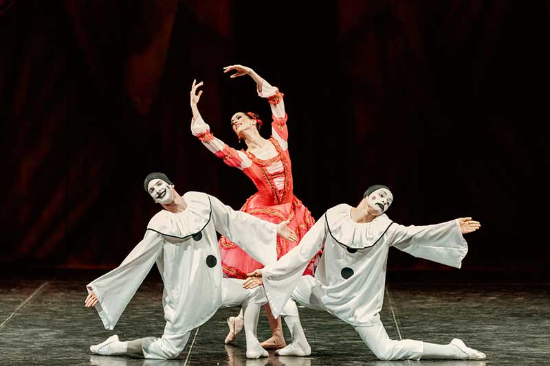 Tanti piccoli gioielli costellano la serata: si comincia con The Fairy Doll, nella versione coreografata dei fratelli Nikolaj e Sergej Legat su musiche di Josef Bayer, per poi arrivare ai brillanti passi a due Harlequinade e il Carnevale di Venezia, fino a ricostruzioni preziose come quella de La Cachucha, creata nel 1836 per la grande Fanny Elsser, che ne fece il suo insuperato cavallo di battaglia. Completano la serata altre creazioni di Fredy Franzutti, alcune delle quali novità assolute, tutte ispirate al tema della maschera o della festa in maschera. Tra queste quella sulle note della composizione inedita per violoncello creata appositamente da Marco Schiavone per “Le Maschere”.