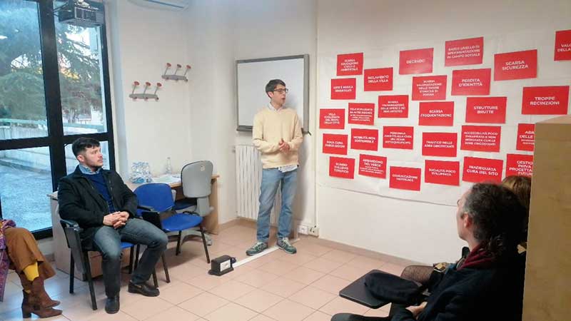 «Dopo aver esaminato i problemi e le criticità rilevate nei precedenti incontri, nel corso del laboratorio di scrittura condivisa con i partecipanti abbiamo scritto l’albero degli obiettivi, per delineare il quadro logico di progetto con azioni e attività da proporre e realizzare concretamente nella Villa Comunale con il coinvolgimento delle associazioni, dei cittadini e realtà che hanno preso parte a questo processo partecipato – spiega Carlo Papa, del consorzio Oltre – . Al di là delle proposte emerse, abbiamo avuto la conferma che a Foggia esiste una comunità che vuole operare in maniera pacata e gentile per valorizzare i suoi spazi comuni». Tante le proposte rilevate, tra cui quella di connettere maggiormente la Villa Comunale con la città, prendendo in considerazione anche una rivisitazione del piano del traffico di piazza Cavour per meglio collegarla con altre risorse ambientali.