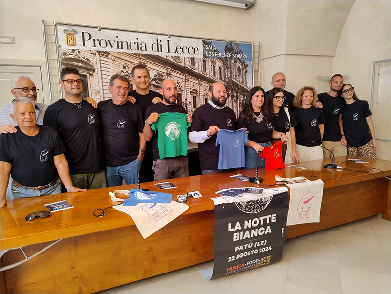 L’evento è stato presentato oggi a Palazzo Adorno. Sono intervenuti il presidente della Provincia di Lecce Stefano Minerva con il consigliere provinciale Francesco Volpe, il sindaco del Comune di Patù Gabriele Abaterusso, il presidente di “Patù Terra di Mezzo” Gianluca Panico, con la vice presidente Chiara Bello, ed i componenti della stessa associazione Ada Bello e Zefferino Letizia.