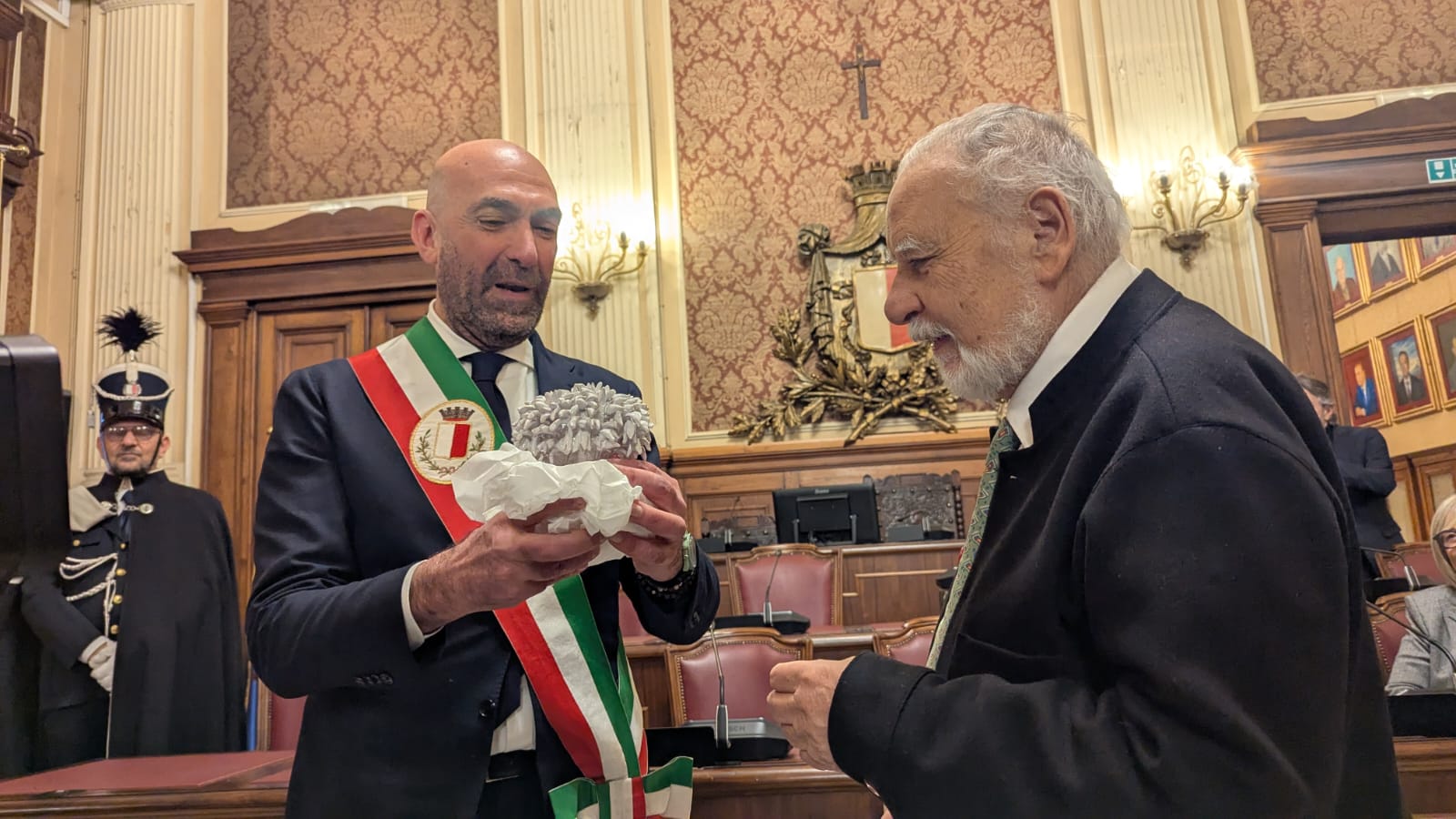 Al termine della cerimonia il sindaco ha consegnato allo scrittore una scultura in ceramica raffigurante un ulivo, albero simbolo della pace.
