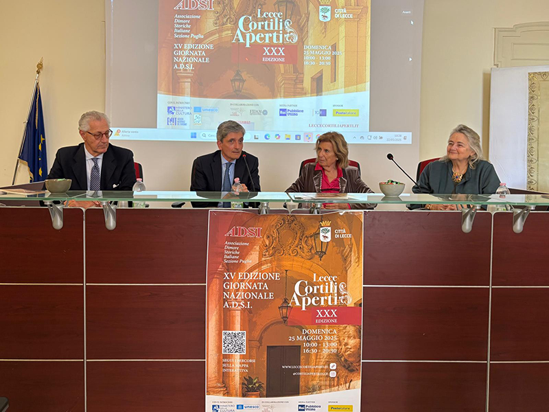 “In questi 30 anni Cortili Aperti ha accompagnato la crescita della città di Lecce proponendo agli innumerevoli visitatori protagonisti di questa giornata la bellezza celata dietro i portoni delle dimore storiche generalmente non visitabili”, dice Rossella Galante Arditi di Castelvetere, già presidente e membro del consiglio direttivo di A.D.S.I. Sezione Puglia, “da sempre grande collaborazione tra i proprietari e le istituzioni pubbliche per dare vita ad un evento ormai nel cuore di tutti. Amo sottolineare il rapporto con le scuole di ogni ordine e grado perché i nostri giovani saranno in futuro loro a portare avanti la cultura del bello e della storia della loro città nei prossimi anni. Siamo felici quest’anno di arricchire il nostro percorso con l’apertura di luoghi di epoche differenti fra loro. Ricordiamo Palazzo Pio inserito nel percorso che per la prima volta uscirà al di fuori delle mura, Palazzetto Bensanti in via della Sinagoga nel quartiere ebraico e la Regia Scuola Artistica Industriale oggi Liceo Artistico e Coreutico Ciardo-Pellegrino animato da un ricco programma di attività curate dai suoi allievi. Un grazie di cuore da parte di tutti noi va al Conservatorio Tito Schipa per la trentennale collaborazione con la manifestazione e che per questo importante anniversario offre all’Associazione e alla Città il concerto del maestro Scipione Sangiovanni presso il Teatro Apollo”.