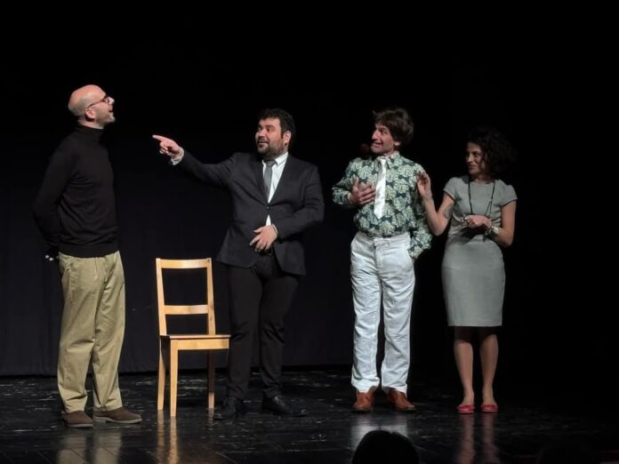 LO SPETTACOLO. Solo una sedia in scena, perno di infinite soluzioni, tante quante sono quelle che intenta Paolo, un giovane e benestante avvocato alle prese con uno spinoso problema: Luisa, sua moglie, non lo riconosce più. La presenza di un maggiordomo intrigante, di una segretaria avvenente e la visita di una coppia di stravaganti parenti, ingarbugliano ulteriormente la faccenda, fino a farle assumere i tratti di un esilarante psicodramma, in una valanga di equivoci e di paradossi che conducono i protagonisti all’imprevedibile colpo di scena finale.