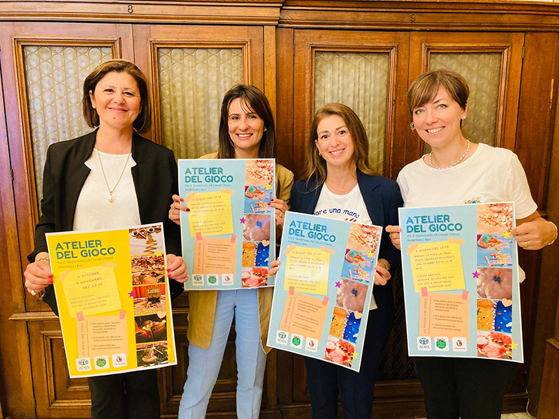 BARI – Si è svolta questa mattina nella sala giunta di Palazzo di Città, la presentazione del progetto “Atelier del gioco”, promosso dall’associazione Adra Italia (sede di Bari) in collaborazione con l’associazione Il Giardino delle Meraviglie e rivolto a bambini e bambine di fascia d’età compresa tra i 18 mesi ai 6 anni provenienti da famiglie in condizioni di disagio socio-economico.