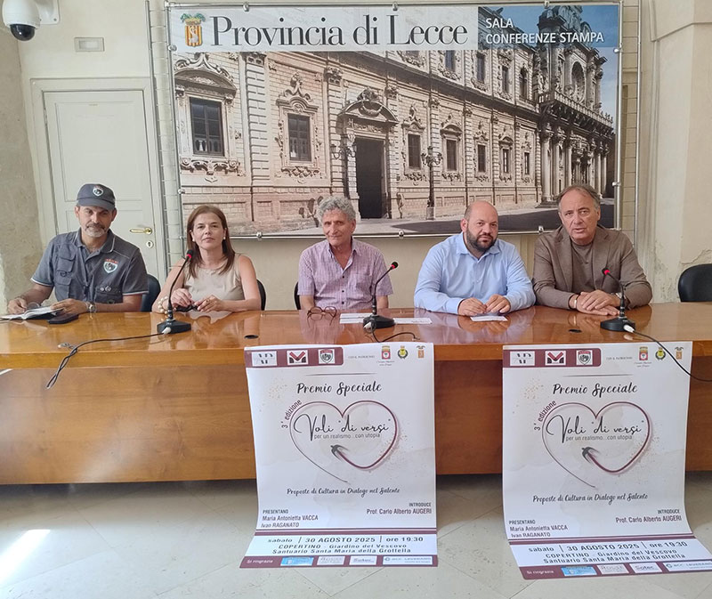 Celebrare cultura, dialogo e comunità attraverso la poesia nella sue varie declinazioni e nei suoi diversi significati. Con queste finalità, torna a Copertino, il Premio Speciale “Voli di Versi”, promosso dall’associazione culturale Azione Parallela, in collaborazione con Giubbe Verdi Salento e Edizioni Milella, con il patrocinio della Provincia di Lecce, della Presidenza del Consiglio regionale della Puglia e del Comune di Copertino.