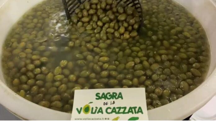 La volìa cazzata rappresenta, dunque, l’identità gastronomica del territorio: raccolte e schiacciate a mano con grossi martelli di legno un tempo, e oggi meccanicamente, queste olive vengono lasciate maturare in acqua per circa 15 giorni prima del consumo o prima di essere conservate in salamoia.