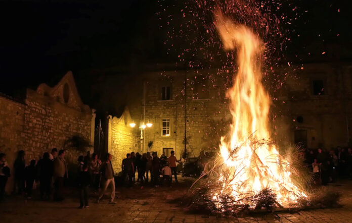 ORSARA DI PUGLIA (Foggia) – A Orsara di Puglia nessuno festeggia Halloween. Non si tratta di demonizzare alcunché, ma in questo borgo della provincia di Foggia, posto al confine con l’Irpinia, dalla notte dei tempi ogni 1° novembre si celebrano “Fucacoste e cocce priatorje”, vale a dire la ricorrenza dei Falò e Teste del Purgatorio. Decine di fuochi e centinaia di zucche intagliate e con un lumino al loro interno, per tutta la notte, illuminano ogni angolo del paese, così che le anime dei defunti possano tornare per una notte a trovare la via delle loro case terrene, rincuorate dal calore dei falò e dal ricordo affettuoso dei loro cari che si riuniscono attorno ai fuochi e consumano cibo dal profondo significato rituale come la “muscitaglia”, il cosiddetto “grano dei morti”, un dolce a base di grano cotto che viene arricchito con melograno, noci e vincotto. Il grano dei morti celebra il ciclo della vita ed è un simbolo di rinascita. Celebrare “Fucacoste e cocce priatorje”, dunque, significa rispettare e rinnovare ogni anno una ricorrenza antichissima, legata alla religiosità popolare e contadina di un tempo, quando una ritualità ancestrale legata ai ritmi agrari delle civiltà contadine serviva a dare un senso al continuum fra la vita e la morte.
