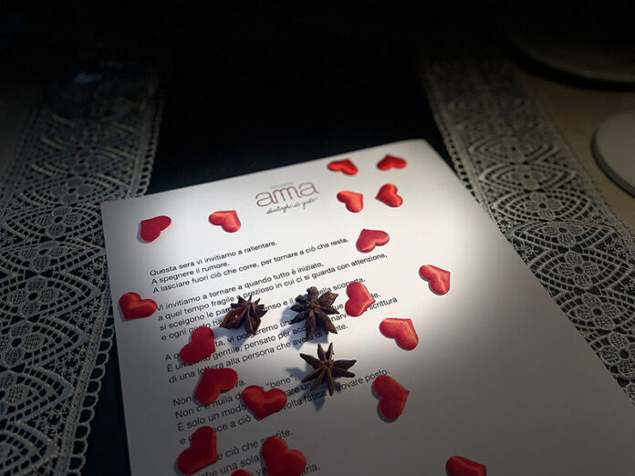 Nel Salento, a partire dal giorno di San Valentino, il ristorante AMA, dialoghi di gusto di Muro Leccese, aperto lo scorso dicembre, inaugura Lettere a Tavola. Un rito intimo e contemporaneo, che nasce dal desiderio di restituire alle parole il loro tempo e il loro peso, invitando le coppie a scriversi una lettera durante la cena per dire ciò che spesso resta sospeso, non detto, trattenuto dal pudore o dalla fretta del quotidiano.