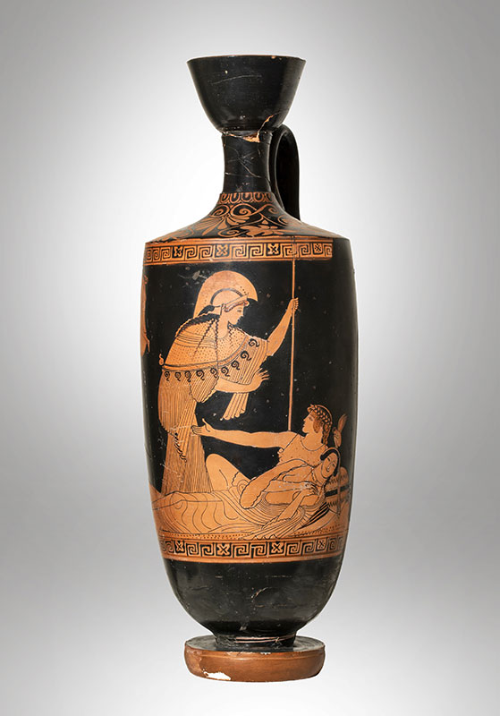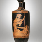 E’ il caso della lekythos attica a figure rosse (470/460 a.C.) in cui si riconoscono Teseo sedotto dalla dea Athena e vicino a lui Arianna addormentata. La scena secondo la mitologia si svolge sull’isola di Nasso. Teseo abbandonò Arianna proprio lì sull’isola greca dando origine, probabilmente all’espressione verbale “piantata in (n)asso”.