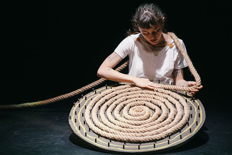 Pìnolo fonde l’esperienza autobiografica dei due attori al racconto di una fiaba: quella di Pina, una bambina esclusa da amici e genitori che non riescono a capirla, semplicemente perché le piace giocare più a Star Wars che con le bambole e al rosa preferisce l’azzurro. Pina si rifugia così sotto il Grande Albero, pensa finalmente di aver trovato il proprio spazio di libertà, ma continua a sentirsi sola. Pian piano, grazie all’amicizia con una pigna, ai saggi consigli del pino e all’incontro con una lumaca, Pina riesce a capire come tornare dai propri simili, senza dover rinunciare a fare ciò che desidera. Lo spettacolo vuole abbattere stereotipi e pregiudizi, facendo comprendere a bambini e bambine che, se a volte si sentono esclusi, devono avere la forza di parlare, di esporsi, senza chiudersi in sé stessi, senza fingere di essere ciò che non sono, imitando gli altri e rinunciando alla propria libertà. «Tutto è partito dall’incontro con i bambini e con le bambine; abbiamo fatto veri e propri laboratori dove, attraverso giochi, esercizi teatrali e interviste, è emerso il loro punto di vista rispetto al tema; alcune delle loro parole sono servite come spunto per la drammaturgia, altre sono state registrate e vengono riprodotte alla fine dello spettacolo», sottolineano Laura Nardinocchi e Niccolò Matcovich. «Pìnolo unisce il linguaggio del teatro e quello della danza, tanto che il significato e il ritmo delle parole si intrecciano con i movimenti e i gesti della danzatrice. Inoltre tutto l’ambiente sonoro è realizzato live, usando stumenti come calimba, tamburello e kazoo o il suono generato da oggetti ed elementi naturali». La compagnia Nardinocchi/Matcovich nasce nel 2020, quando i due iniziano a lavorare insieme con lo spettacolo Arturo, vincitore del Premio Scenario Infanzia 2020, del Premio della Critica al FringeMI 2022, del Premio delle Giurie di Direction Under 30 2022 e del Bando Life is Live e finalista al Premio In-Box 2021.