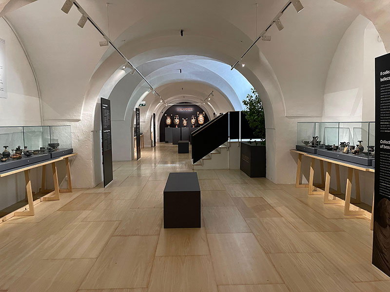 Silenziosi testimoni del passato, i vasi antichi della mostra temporanea RiScoperte. Luci e ombre del collezionismo, allestita nel Grottone, diventano custodi di nuovi racconti. Attraverso narrazioni scritte e registrate per l’occasione, verrà restituita identità a ciò che il tempo ha reso anonimo. Le storie si intrecciano a un paesaggio sonoro costruito con materiali — marmi, creta e superfici ceramiche — trasformati in elementi musicali. Il suono nasce così dalla stessa materia degli oggetti esposti, creando una continuità percettiva tra sguardo e ascolto. La luce, fulcro dell’installazione, guida il visitatore: fasci luminosi calibrati si modulano in relazione ai racconti, svelando progressivamente i vasi e trasformando lo spazio in una scenografia viva e mutevole. Ogni accensione diventa gesto narrativo, un invito alla scoperta.